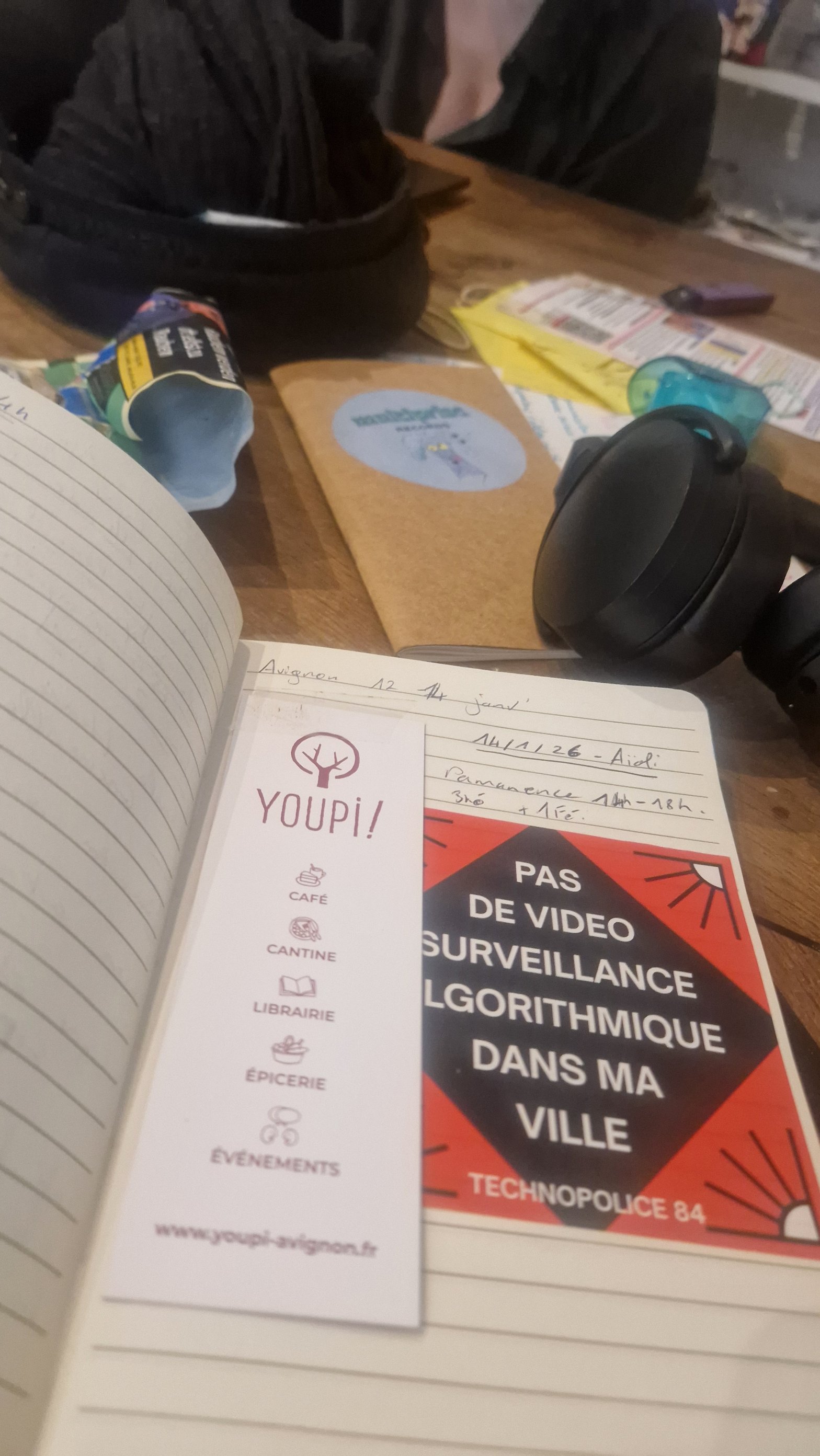 La 2ᵉ fois était la bonne : j’ai pu rencontrer Aïoli Radio à Avignon. Côté radio aussi, l’année démarre en douceur. Aïoli, c’est la plus jeune radio que j’aie rencontrée jusqu’ici. Elle a été créée en 2021 sous l’impulsion de membres de la communauté Longo Maï et de Radio Zinzine. Pour mémoire, j’avais rencontré Radio Zinzine en septembre dans les Alpes-de-Haute-Provence. Cette radio a été créée par des membres de la communauté Longo Maï, qui gèrent toujours l’association, même si elle est ouverte à toustes. Il s’agit d’une communauté anarchiste autogérée, installée dans les années 1970 et vivant en quasi-autonomie. Longo Maï a essaimé plusieurs communautés en France et en Europe, dont une proche d’Avignon, à La Bastide des Jourdans. Alors que la France est en train de déployer le DAB+ (Digital Audio Broadcasting ou radiodiffusion numérique terrestre), une nouvelle fréquence s’est ouverte à Avignon. |
