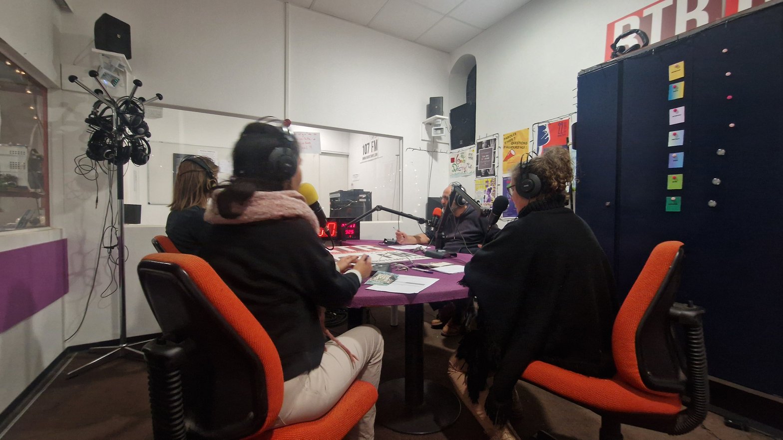 Par rapport aux autres radios que j’ai pu croiser, c’est l’une des seules où personne, ni dans les bénévoles ni dans les salariées, ne vient du monde de la radio libre des années 1980. J’ai remarqué une organisation peut-être plus « formelle », suivant les consignes de l’Arcom de très près. Les bénévoles ne sont quasiment jamais laissé·e·s seul·e·s dans les studios, et la coordinatrice écoute la plupart des émissions bénévoles pour s’assurer de l’adéquation des propos tenus. Notons tout de même que la radio en milieu rural suppose d’autres contraintes : celles de parler à tout le monde, mais aussi des bénévoles moins nombreux·ses vivant parfois loin du local de la radio.