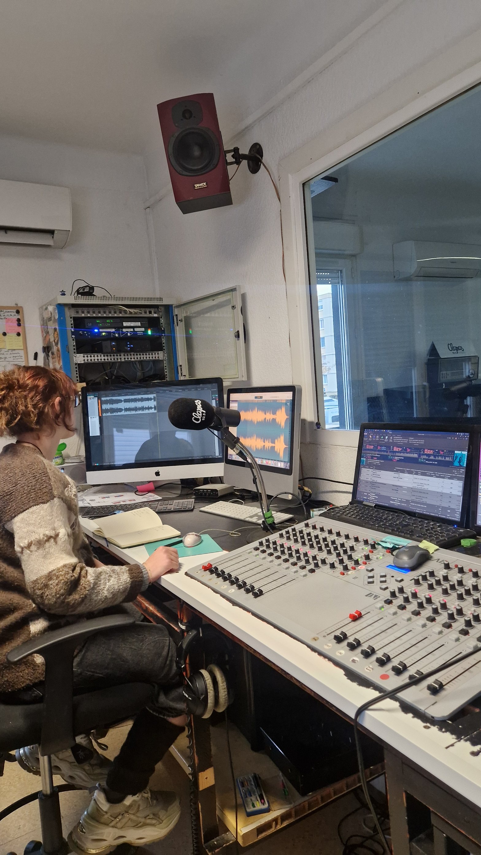 Si vous suivez bien, c’est la deuxième radio campus que je rencontre (voir la newsletter de novembre), mais la première située dans une grande ville étudiante, où se croisent de nombreux cursus différents. Contrairement à ce qu’on pourrait penser, les Radios Campus ne sont pas exclusives aux étudiant·e·s. À Montpellier, les producteurices d’émissions bénévoles sont à peu près moitié étudiant·e·s, moitié non-étudiant·e·s. En effet, les Radios Campus visent à créer du lien entre l’université et la cité, se positionnant naturellement comme un lieu de rencontre et d’échange intergénérationnel.